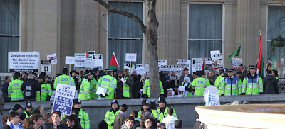 Just a side note...here in Oslo, Norway we had a pro-Israel rally with a few hundred protesters (last Thursday) and a few thousand anti-Israel protesters showed up, causing quite a ruckus (to put it mildly) to the point where police had to use teargas. It was quite frightening. It seems as if the press was tipped off beforehand cuz they came prepared with masks!